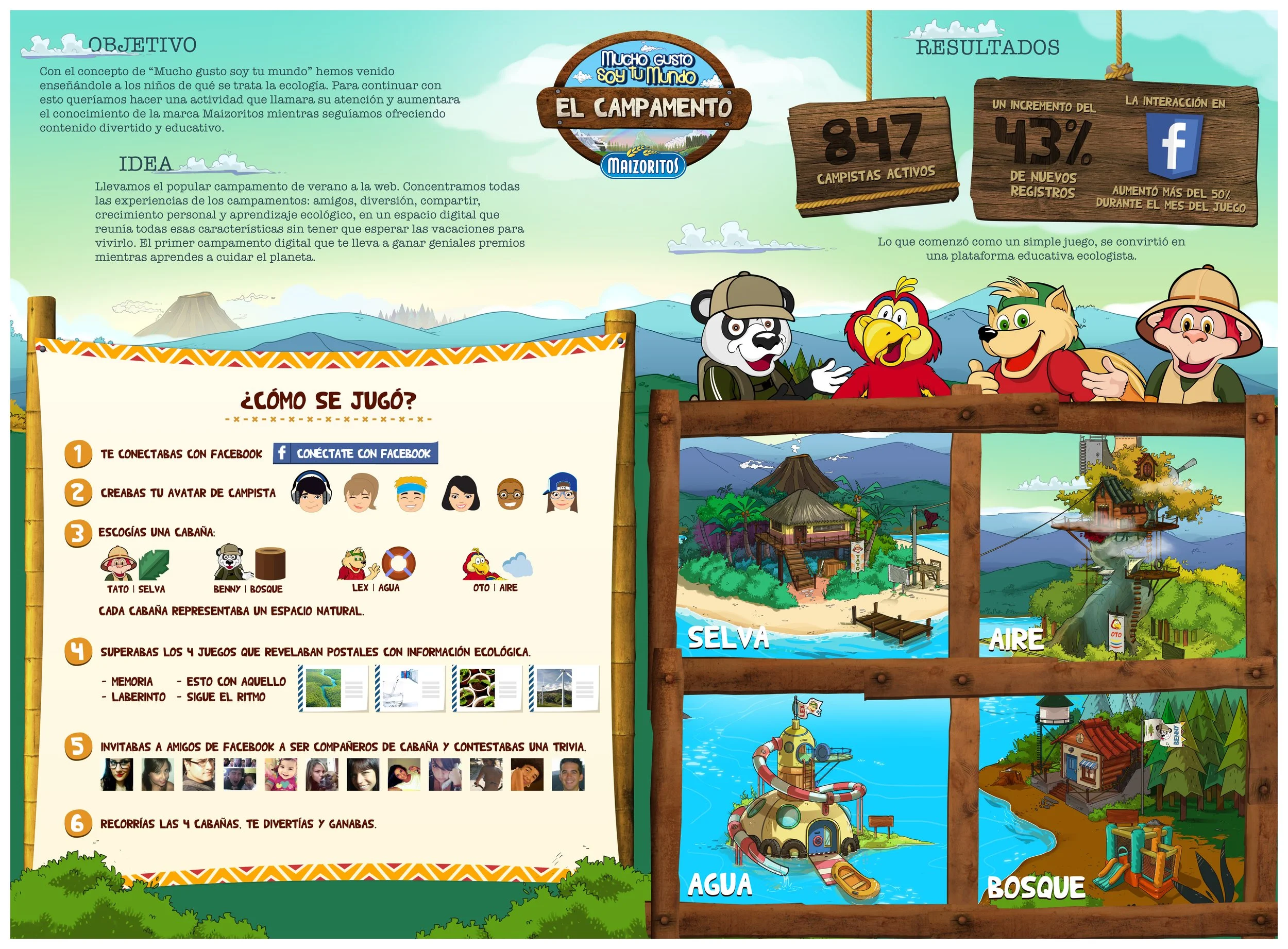 What started as a simple game, turned into an eco-friendly educational platform. The number of active campers reached 847, there was a 43% increase in new registrations and Facebook interaction increased by more than 50% during the month of the game.